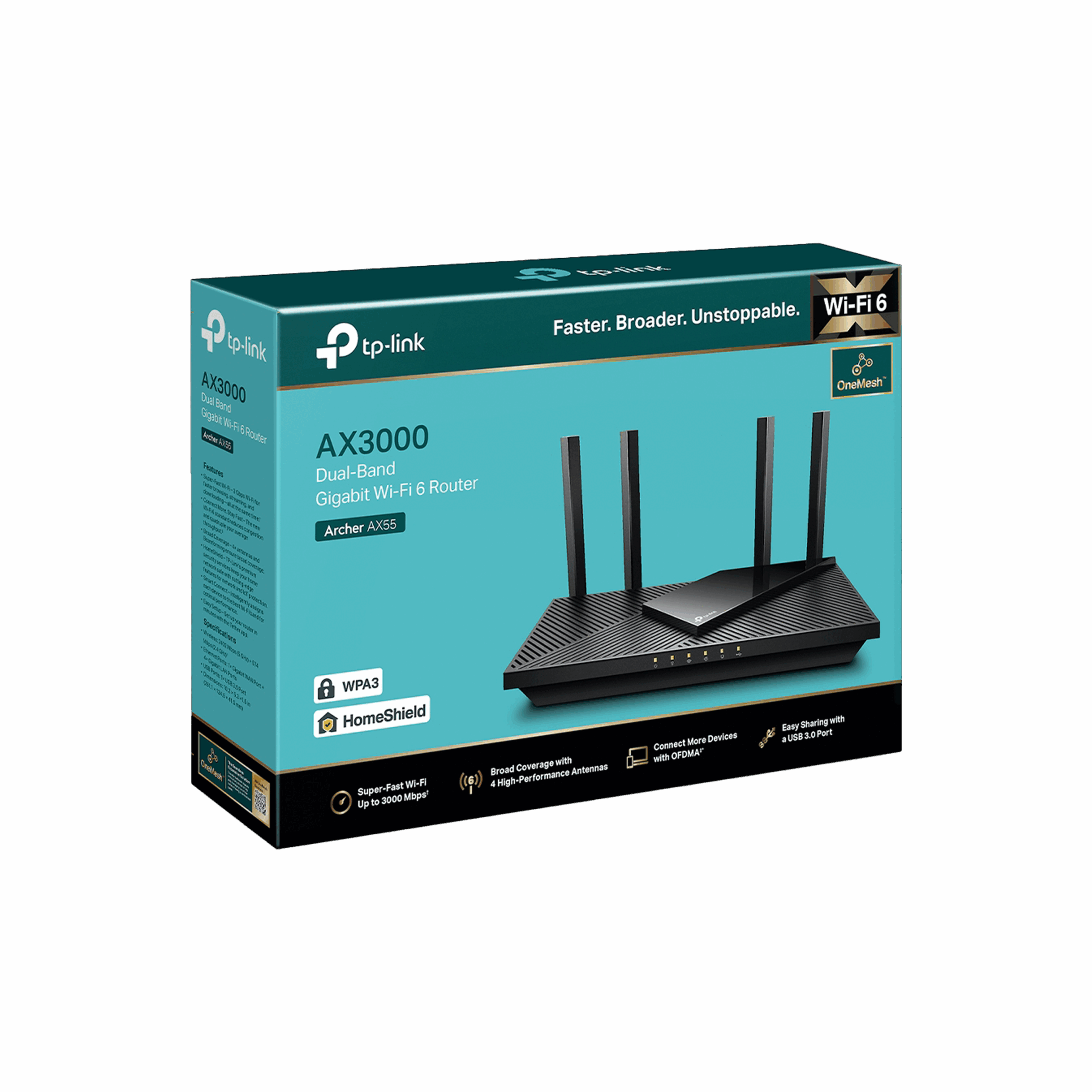 • Wi-Fi 6 nouvelle génération – Débit théorique total de 3000 Mbps pour des performances exceptionnelles